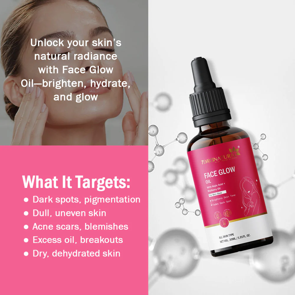 Get the glowing, radiant & flawless skin of your dreams free from acne, pimples, blemishes, pigmentation & dark spots. Say goodbye to skin dryness & signs of aging such as lines, wrinkles & skin sagging with the 7 Days Face Glow Oil made with the best blend of natural ingredients that work together to give you picture-perfect skin with regular use!