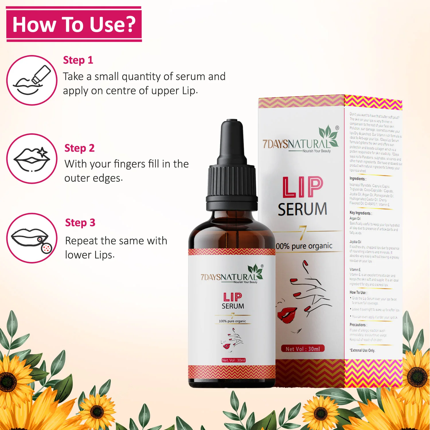 7 Days Lip Serum, a transformative blend of natural wonders meticulously curated to revive and enhance your lips.