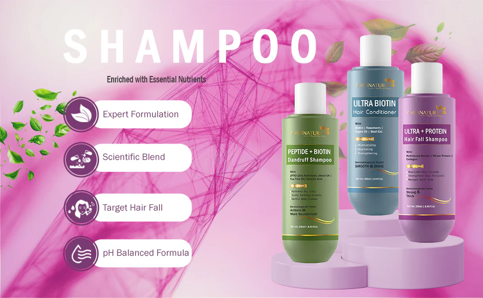 Transform your hair care routine with this premium Ultra Protein Hair Fall Shampoo and Biotin Conditioner set from 7 Days Natural. The shampoo, enriched with hydrolysed keratin, wheat protein, and collagen, works effectively to nourish hair strands, strengthen follicles, and manage split ends. Its companion, the Ultra Biotin Conditioner, features a powerful blend of biotin, rosemary, argan oil, and basil extract. This 250ml duo is dermatologically tested and specially formulated to deliver strong, thick hair while the conditioner ensures smooth, shiny results. The shampoo’s protein-rich formula targets hair fall concerns, while the moisturising conditioner provides essential nourishment and strengthening benefits. Together, they work in harmony to promote healthier, more manageable hair. The convenient 250ml size of each product makes them perfect for regular use in your daily hair care regimen.