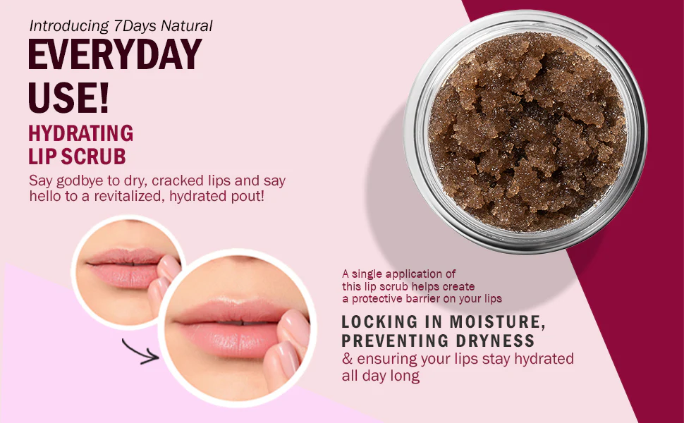 7Days Natural Lip Scrub is made with the perfect blend of natural ingredients to lighten your lips as well as keep them supple, soft, smooth & plumped up.